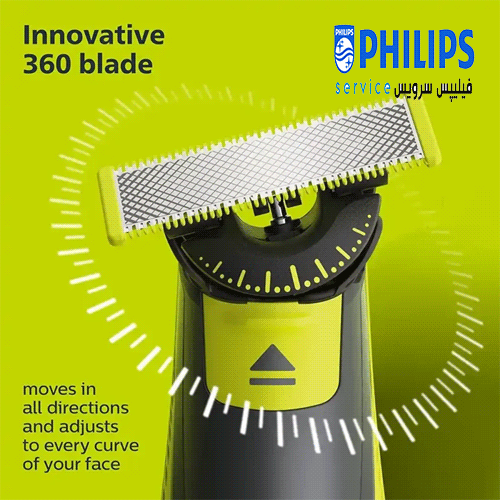مهمترین ویژگی این مدل، طراحی 360 درجه تیغه است. این تیغه بهصورت کاملاً انعطافپذیر طراحی شده تا به نرمی روی خطوط و زوایای مختلف صورت، گردن و چانه حرکت کند. این انعطافپذیری موجب میشود تیغه همیشه در تماس کامل با پوست باشد و اصلاحی تمیز، یکنواخت و سریع فراهم کند. همین ویژگی باعث شده که تجربه استفاده از OneBlade از حالت معمولی به سطحی حرفهای ارتقا یابد.