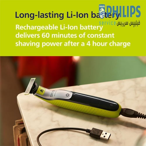 باتری این دستگاه اصلاح فیلیپس با چهار ساعت شارژ شدن، آماده استفاده برای ۶۰ دقیقه میشود. این ویژگی امکان شارژ کردن دستگاه در منزل یا هنگام سفر را فراهم میآورد. دستگه این دستگاه اصلاح به گونهای طراحی شده است که استفاده از آن بسیار ساده و بدون خستگی است.
