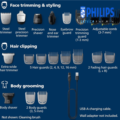 ماشین اصلاح MG9520/50 معمولاً با مجموعه‌ای از سری‌ها و شانه‌های مختلف ارائه می‌شود که امکان تنظیم طول اصلاح برای نواحی مختلف صورت، مو و بدن را فراهم می‌کند. از تریمرهای پهن برای موی سر گرفته تا سری‌های دقیق برای خط‌زنی و جزئیات، همه در یک بسته گردآوری شده‌اند.ماشین اصلاح فیلیپس